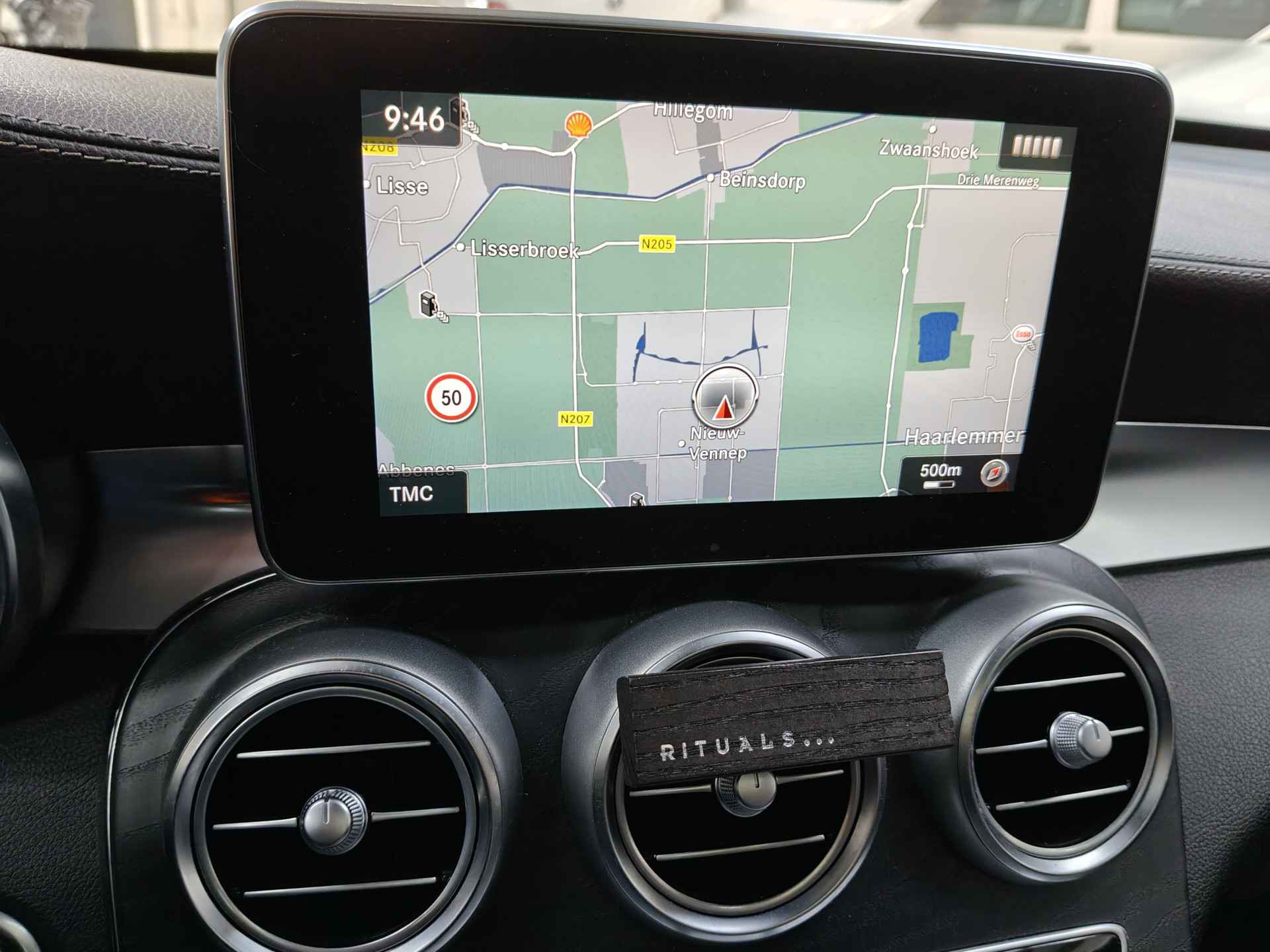 aangegeven op de kilometerteller die aanwezig is in de auto.